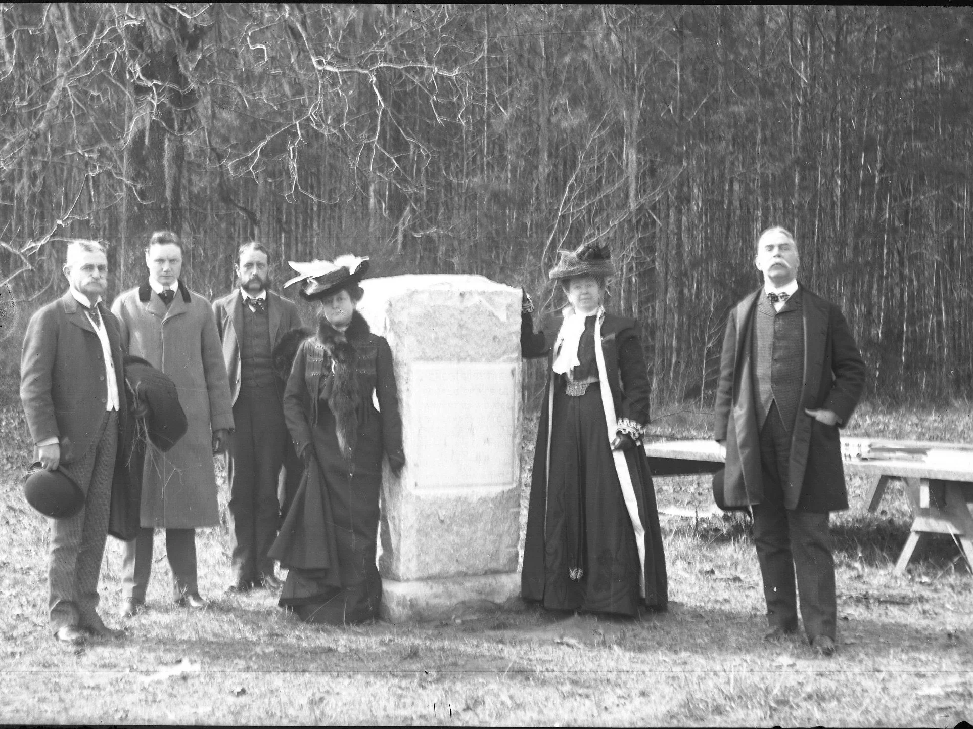 Participants at the 1902 bicentennial commemoration of Mobile gathered beside the monument erected to mark the site of Fort Louis de la Mobile at Twenty-Seven Mile Bluff. Image courtesy of the Historic Mobile Preservation Society Minnie Mitchell Archives.