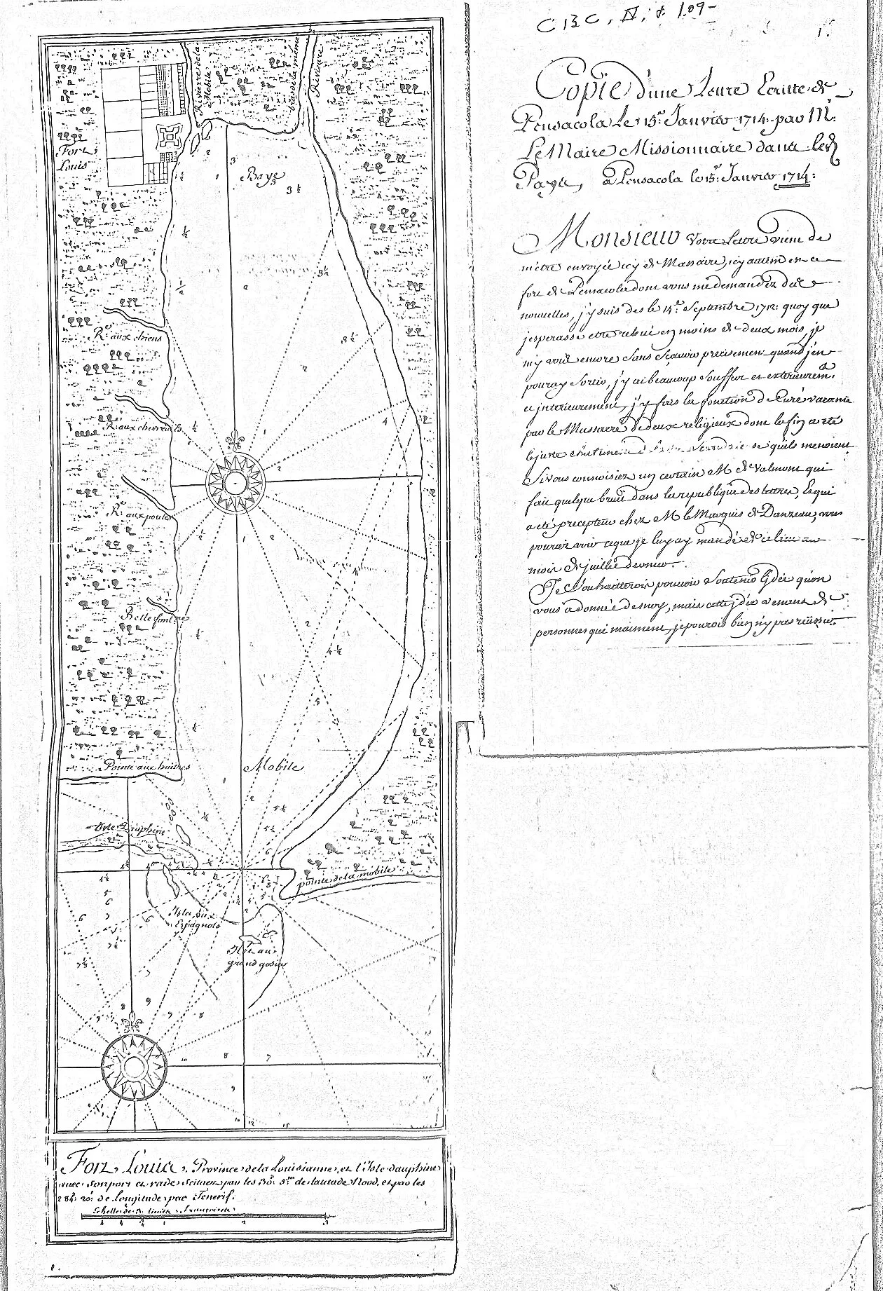 French missionary letter written from Pensacola, 1714